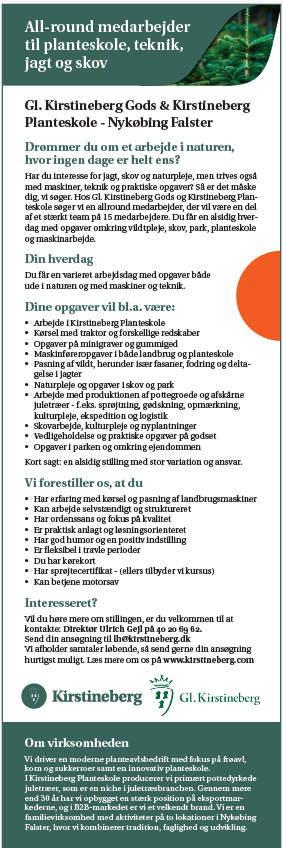 dig, vi søger. Hos Gl. Kirstineberg Gods og Kirstineberg Planteskole
